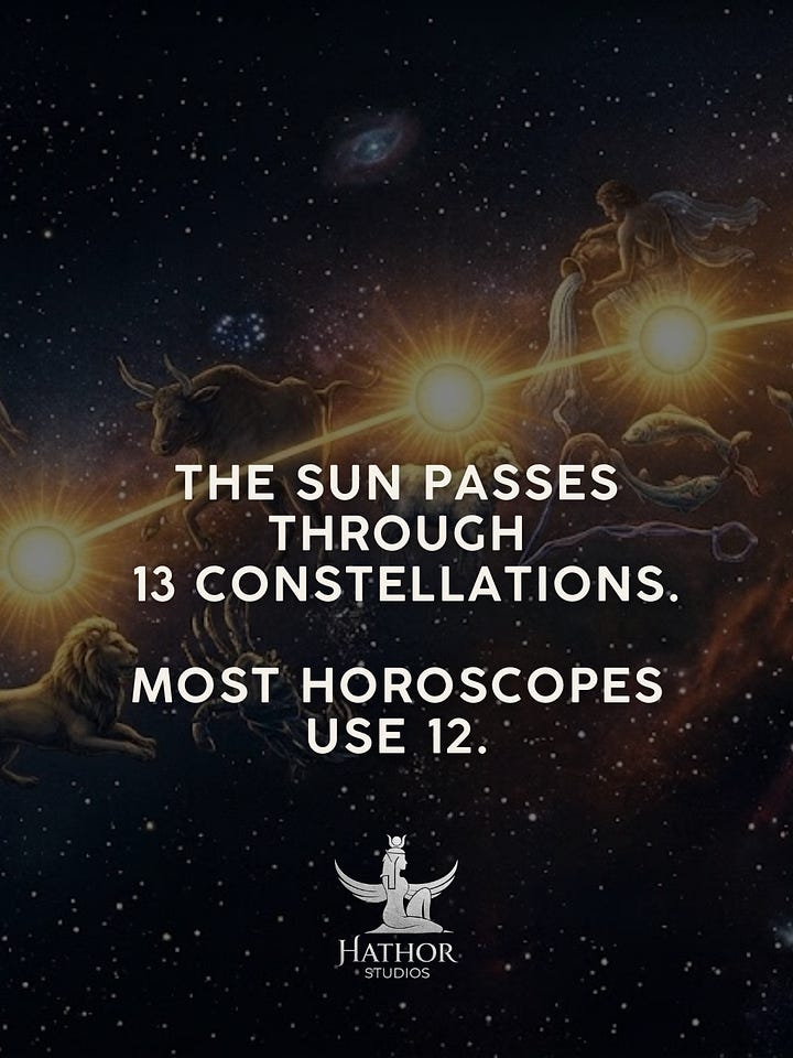 Astronomically, the Sun’s apparent annual path along the ecliptic intersects thirteen constellations, including Ophiuchus. This is not an alternative belief system; it is a matter of sky mapping.